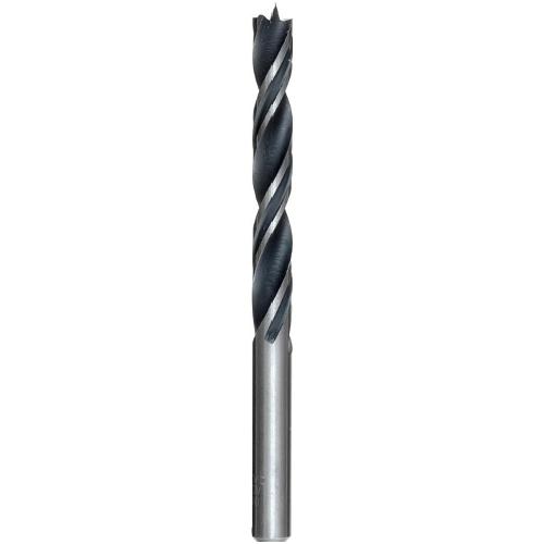 Punta elicoidale per legno, forgiata senza asportazione di trucioli, forma elicoidale a due smussi, per linee dritte stabili, colore nero, spirali rettificate a lucido, con punta di centraggio e tagliente di spalla, per fori precisi senza schegge, codolo cilindrico, qualità industriale, per legno duro e tenero.