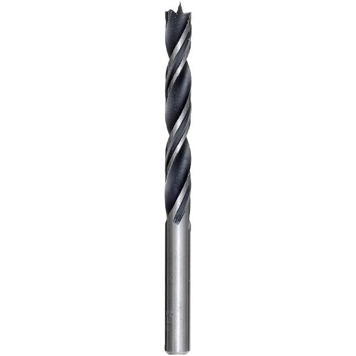 Punta elicoidale per legno, forgiata senza asportazione di trucioli, forma elicoidale a due smussi, per linee dritte stabili, colore nero, spirali rettificate a lucido, con punta di centraggio e tagliente di spalla, per fori precisi senza schegge, codolo cilindrico, qualità industriale, per legno duro e tenero.