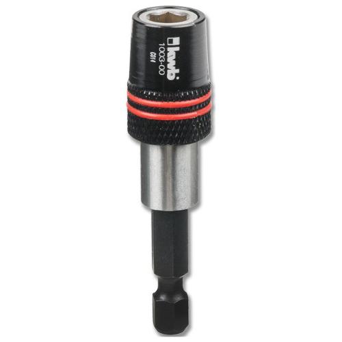 Portabit a rapida sostituzione, alloggiamento 1/4" esagono secondo iso 1173, con calamita permanente, rosetta elastica, funzione di sostituzione rapida, comando a una mano, rilascio bit mediante facile ritiro della boccola metallica, gambo esagonale 1/4" alloggiamento secondo iso 1173, e 6.3.