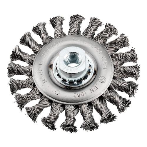 Spazzola a disco, filo di acciaio hss allicciato, per disossidare, sbavare, sverniciare, disincrostare e pulire saldature, per metallo e pietra, per lavori in bordi stretti, telai, e grate