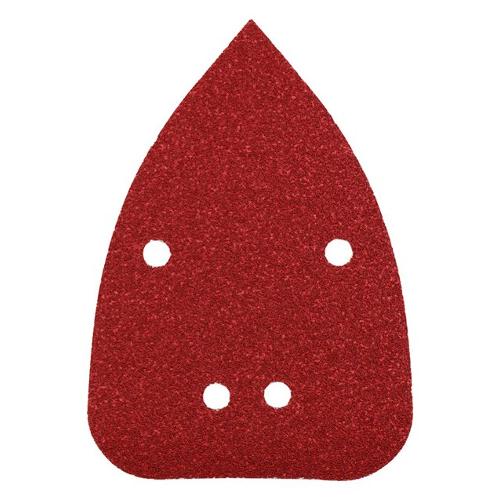 Triangoli abrasivi, legno & metallo, corindone pregiato, 96 x 136 mm, con riporto di ossido di alluminio, legato con resina completamente sintetica, materiale di supporto rinforzato, con parte posteriore di velours, forato per levigatrici a delta, per levigare metallo e legno, colore, vernice, stucco, pietra e materia plastica.