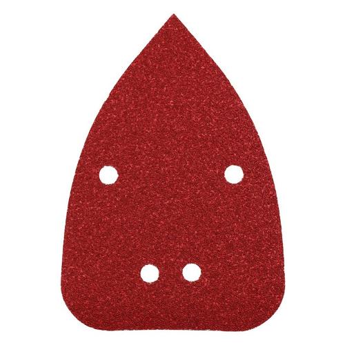 Triangoli abrasivi, legno & metallo, corindone pregiato, 96 x 136 mm, con riporto di ossido di alluminio, legato con resina completamente sintetica, materiale di supporto rinforzato, con parte posteriore di velours, forato per levigatrici a delta, per legno e metallo, vernice, smalto, stucco, pietra e materia plastica.
