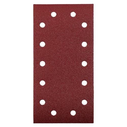 Strisce abrasive, legno & metallo, 115 x 230 mm, corindone pregiato, rivestite di ossido di alluminio, legate con resina sintetica, materiale di supporto rinforzato, con lato posteriore di velours, forate. Per levigatrice orbitale con piastra di supporto adesiva in velcro e sistema di aspirazione. Per levigare metallo e legno, colore, vernice, stucco, pietra e materia plastica.