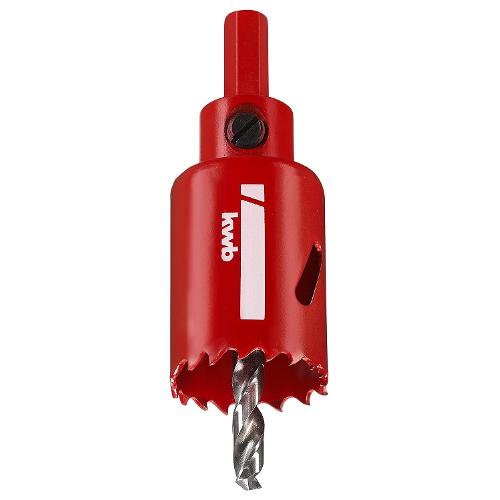 La sega a tazza bimetallica kwb HSS con punta centrale da 6 mm è stata sviluppata per l'uso artigianale e professionale nelle finiture d'interni, nei lavori di elettricista e di installazione, nell'assemblaggio di piani di lavoro e tavoli da cucina e per tutti i lavori in legno. Grazie alla dentatura variabile progressiva in acciaio HSS, non si inceppa e consente una rapida rimozione dei trucioli. La sega a tazza bimetallica kwb HSS taglia con precisione in un'ampia gamma di materiali, tra cui acciaio (strutturale), ghisa grigia, lamiera d'acciaio, alluminio, bronzo, rame, plastica, acrilico, cartongesso, legno duro e morbido, legno rivestito, legno strutturale, pannelli in PRFV, vinile, isolamento in fibra di legno, compensato e pannelli laminati (HPL). Ha una profondità di taglio di 38 mm e un attacco esagonale 10 mm per avvitatori e trapani elettrici e a batteria