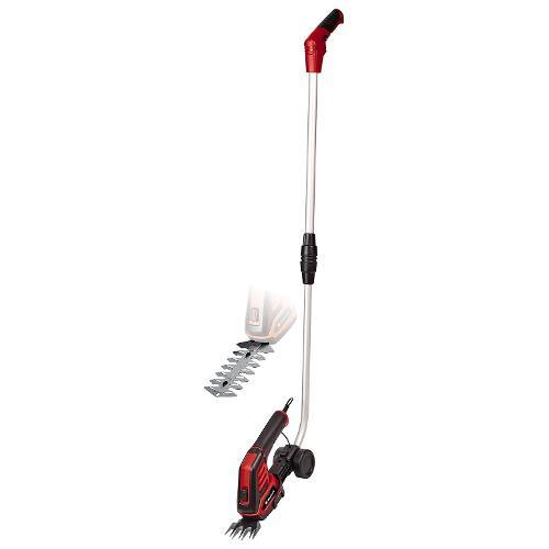 Le forbici per erba e cespugli a batteria einhell gc-cg 3,6/70 li sono un aiuto affidabile per un taglio preciso e confortevole nel giardino di casa. Le forbici a batteria sono adatte a tutti i giardinieri amatoriali che non vogliono solo tagliare l'erba, ma anche tagliare i rami. È una comoda alternativa alle seghe a mano o alle forbici da giardino. Prima di tutto, le forbici per cespugli ed erba alimentate a batteria sono più leggere, più silenziose e offrono una maggiore flessibilità rispetto ai dispositivi a benzina o elettrici, rendendole lo strumento ideale per tagliare e modellare cespugli e arbusti. La scatola del cambio coperta protegge dal contatto con l'olio del cambio, il cambio lama è semplice e completamente senza attrezzi. Grazie alla larghezza di taglio di 70 mm, la lama tagliaerba è perfetta per la cura dei bordi del prato. La lama tagliasiepi taglia rami e rametti fino a 8 mm di spessore ed è particolarmente adatta per la cura di siepi e cespugli garzie alla lunghezza di taglio di 110 mm. Il softgrip offre una presa perfetta e sicura e la prolunga telescopica in dotazione garantisce un'applicazione particolarmente ergonomica. La batteria da 2,0 ah è fissa. Un cavo di ricarica per ricaricare le forbici per erba e cespugli a batteria è incluso.