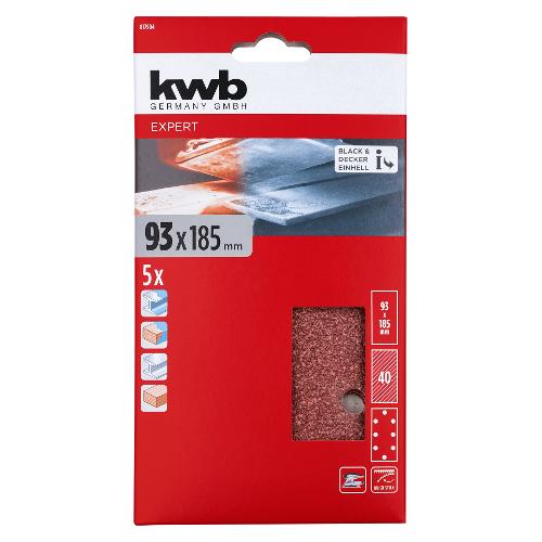 Kwb Set fogli abrasivi carta preforata levigatrici orbitali 5 pz (93x185 mm grana P40) QUICK STICK 49817904