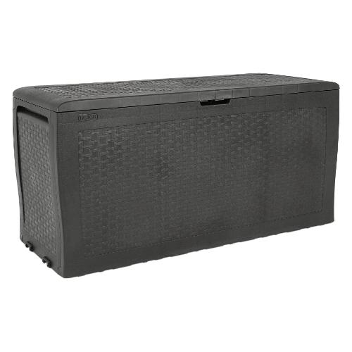 Samoa è un baule dotato di 270 litri di capacità e di dimensioni compatte che lo rendono adatto anche agli spazi più ristretti. È realizzato con resina durevole e resistente agli agenti atmosferici. Il vano contenitore mantiene asciutto e ventilato. Il baule è dotato di maniglie laterali, ruote per uno spostamento semplificato. Coperchio con portata fino a 150 kg