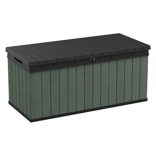 Baule realizzato in EVOTECH, particolare finitura che riproduce il legno naturale, alla vista e al tatto. Dotato di pistoni per un’apertura e una chiusura facilitate. Sistema di chiusura con lucchetto (lucchetto non incluso). Seduta per due persone adulte. Resistente ai raggi UV e alle intemperie