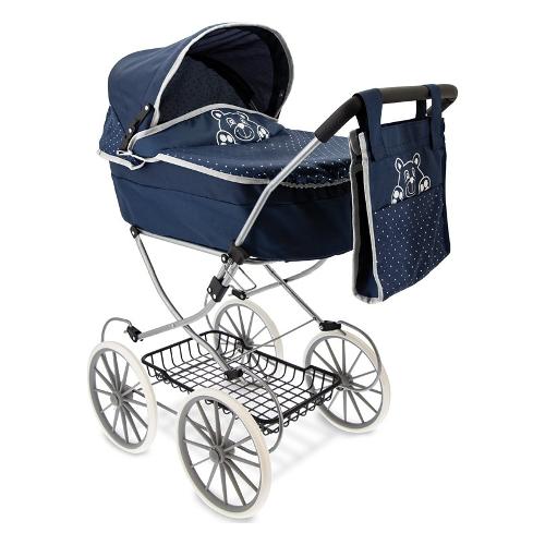 Carrozzina giocattolo classica con borsetta (90cm) BABY TEO Blu 74256