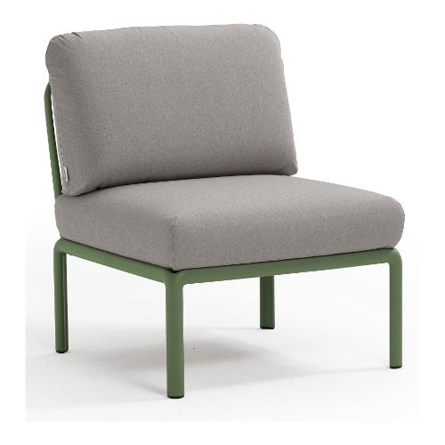 Poltrona senza braccioli. Acquistabile singolarmente o progettabile come elemento centrale in composizioni più ampie previste dalla collezione di sedute modulari Komodo. Cuscino sfoderabile