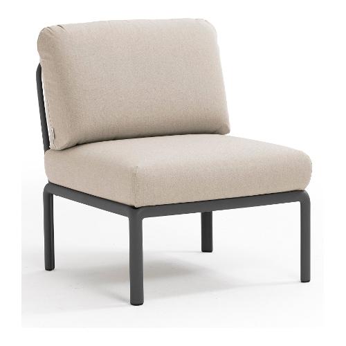 Poltrona senza braccioli. Acquistabile singolarmente o progettabile come elemento centrale in composizioni più ampie previste dalla collezione di sedute modulari Komodo. Cuscino sfoderabile