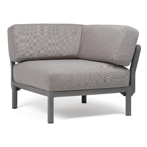 Poltrona ad angolo senza braccioli con struttura in resina rigenerata e tessuti ad alta componente riciclata. Acquistabile singolarmente o progettabile come elemento compositivo del divano modulare MAXIMO