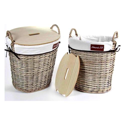 Gicos Porta biancheria Vimini (50x37x53cm) ovale con coperchio legno Naturale e Bianco 933356