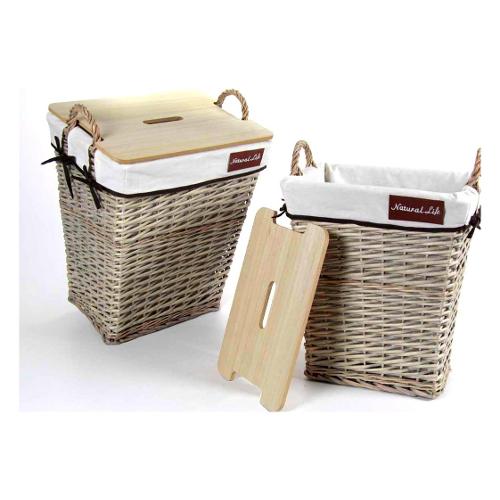 Porta biancheria Vimini (45x35x53cm) con coperchio legno Naturale e Bianco 933370