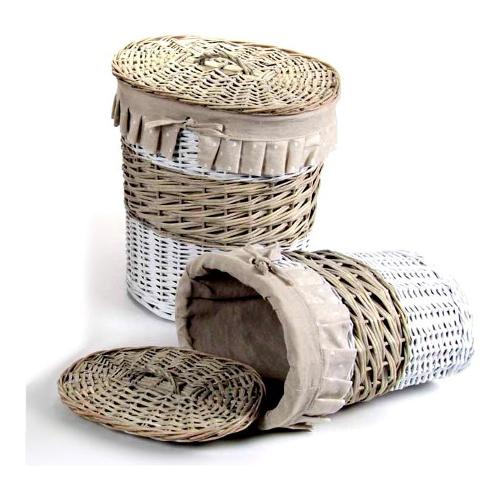 Gicos Porta biancheria Vimini (31x20x40cm) ovale Bianco e Tortora 933295