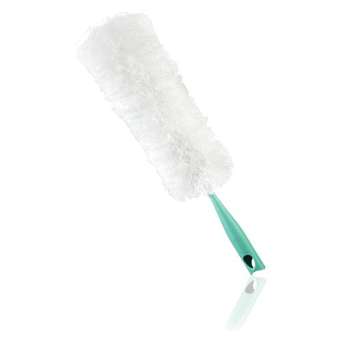 La polvere scompare in pochi secondi: per il piumino duster xl è un gioco da ragazzi perché attira da solo anche la polvere più sottile. Le microfibre antistatiche estremamente spesse si legano alla polvere impedendo alle particelle di polvere di sollevarsi soltanto e depositarsi di nuovo nello stesso punto. Le sue fibre morbide seguono ogni fessura e ogni scabrosità. È possibile ripulire dalla polvere le piante da interni, gli scaffali e le persiane in modo affidabile. Anche su superfici estremamente delicate, come ad esempio gli schermi di computer e televisioni, duster xl segue i profili con delicatezza senza provocare danni. Duster xl dispone di una superficie di pulizia dotata di una lunghezza maggiorata di 38 cm, perfetta per la pulizia di superfici ampie e lisce, come le superficie dei tavoli o gli schermi. L'impugnatura consente l'impiego di un manico del sistema click di leifheit con funzione telescopica con il cui impiego duster xl raggiunge gli angoli distanti degli ambienti. È possibile appendere questo articolo per garantire una pratica sistemazione.