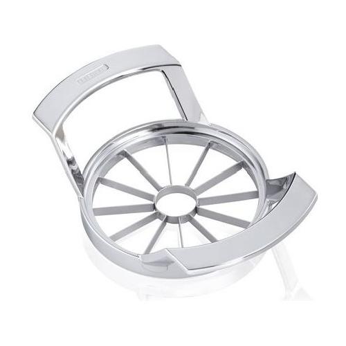 La soluzione adatta per decorazioni o per piccoli snack: grazie al tagliamele proline è possibile tagliare mele e pere in modo rapidissimo preparandole per essere consumate. Completamente cromato, il tagliamele in acciaio inox soddisfa le aspettative con i suoi dettagli ben congegnati. Le dodici lame in acciaio inox antiruggine tagliano le mele e le pere a pezzetti uniformi. Allo stesso tempo viene rimosso il torsolo completando due passaggi in uno solo. Le impugnature laterali, che risultano stabili e sicure alla presa, assicurano un'applicazione potente del tagliamele. E’ possibile tagliare e affettare mele grandi senza sforzo grazie al suo diametro di 90 mm.