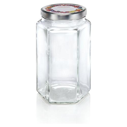 Il vasetto decorativo leifheit con design esagonale ha una capacità di 1700 ml che lo rende versatile in cucina: può essere impiegato per conservare sia frutta che verdura in modo ermetico. Fa la sua figura anche come lanterna da esterno. Praticissimo: il diametro di 100 mm dell'apertura consente di riempire completamente il vasetto con facilità. Anche i pezzi di verdura più grossi passano senza sforzi dall'apertura e possono essere estratti facilmente. I vasetti vengono inoltre sigillati con un coperchio decorato avvitabile sul quale è possibile apporre descrizioni come la data di scadenza.