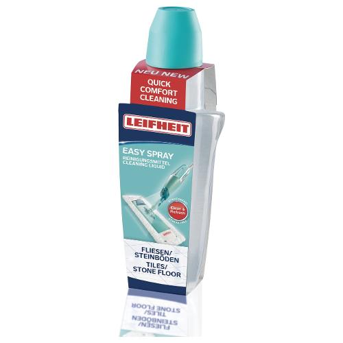 La cartuccia leifheit easy spray pronta all'uso contiene uno speciale detergente per la pulizia intermedia rapida e semplice di piastrelle e pavimenti in pietra.