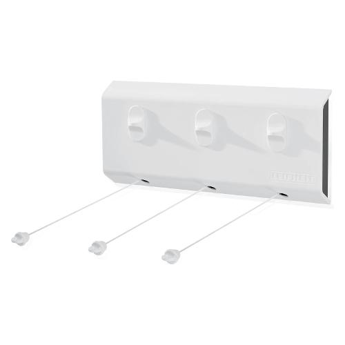 Stendibancheria da parete con avvolgimento automatico per biancheria e fili puliti. Lunghezza totale dei fili 15 m (tre volte 5 m) per un massimo di due carichi di lavatrice. Adatto per uso interno ed esterno grazie al materiale resistente alle intemperie. Fili in poliestere rivestiti in PVC facili da pulire La lunghezza dei fili può essere scelta liberamente in base alla larghezza del locale e allo spazio disponibile.