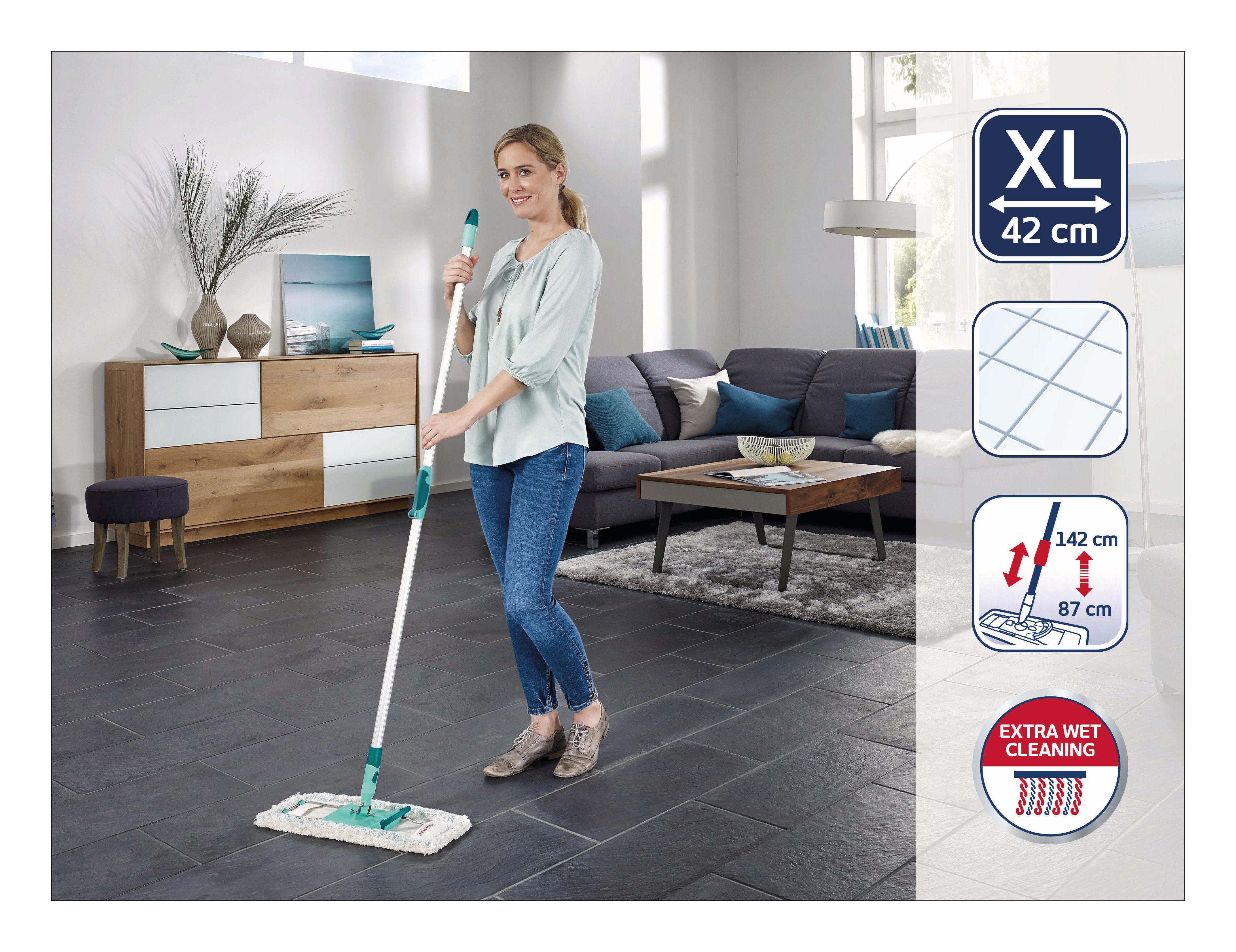 Con il lavapavimenti Profi XL cotton plus ottenere una pulizia perfetta dei pavimenti in pietra e piastrelle con il massimo comfort non rappresenta un problema.