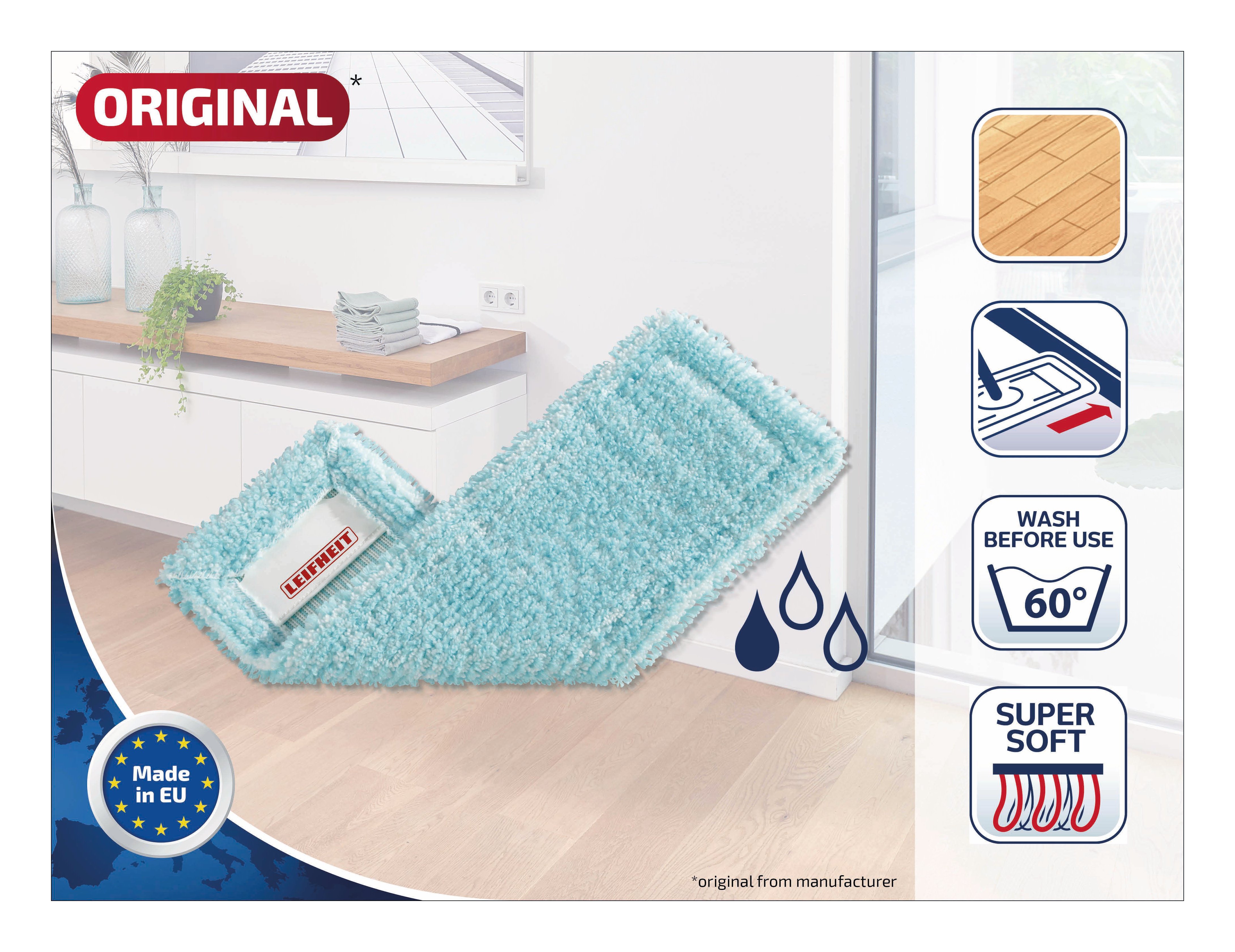 XL Super Soft, che anche dopo ripetuti lavaggi offre tutta la sua capacità di pulizia. Il rivestimento è perfetto per il Lavapavimenti Profi XL di Leifheit.
