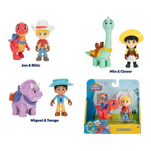 3 modelli disponibili, ogni coppia è formata da un personaggio alto 7,5 cm circa e da un dinosauro alto 9 cm circa. Ogni personaggio ed ogni dinosauro è articolato in 5 punti. La sella del dinosauro può essere rimossa.