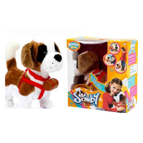 Il fantastico cagnolino, perfetto compagno di gioco per i più piccoli. Samby è come un vero cucciolo! 1) Fa la cuccia: se accarezzato sulla testa, lui si siede, abbaia, scodinzola e muove la testa. 2) Cammina: battendo le mani, Samby cammina ed abbaia contento. 3) Vuole andare a spasso: mettendogli la pettorina e il guinzaglio, farà le feste perchè è felice di passeggiare con il bambino.
