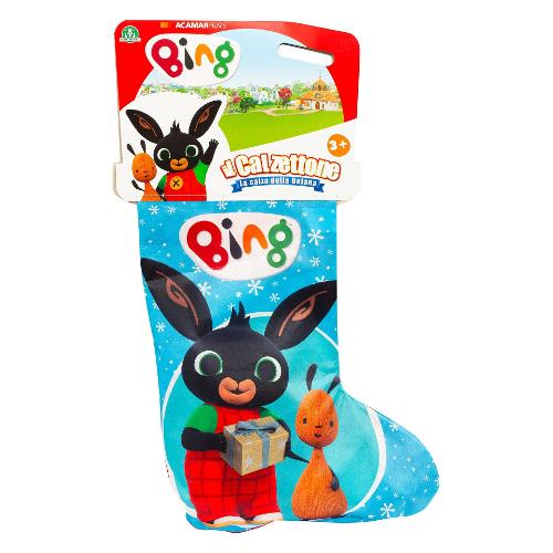 Un mondo di sorprese con il calzettone di bing! La calza in tessuto contiene sempre un peluiche da 20 cm, una coppia di personaggi e un set di stickers.