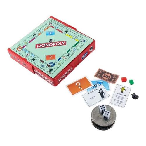 Include: dadi, gettoni,case hotel, carte, denaro, tabellone da gioco e scatola per trasportare tutti i pezzi e giocare ovunque.