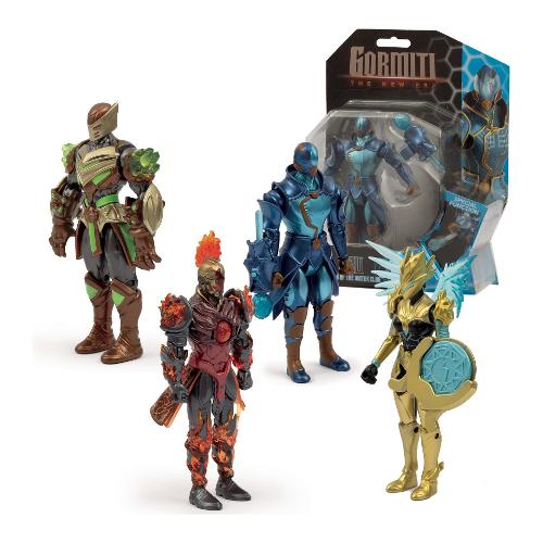 I quattro gormiti in versione action figure alti 15 cm con nove punti di articolazione. Tutti i personaggi hanno una funzione di attacco che riproduce la mossa d’attacco caratteristica vista nella serie tv.