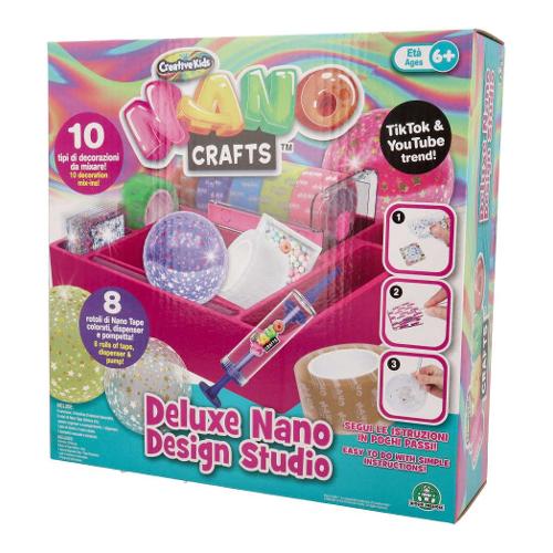 Di art&craft! Il deluxe nano crafts design studio offre tutti i materiali necessari per creare una vasta gamma di decorazioni uniche e creative. Con 10 set di elementi decorativi da mixare, 1 pompa ad aria e 8 rotoli di nastro tape inclusi, le possibilità creative sono praticamente infinite.