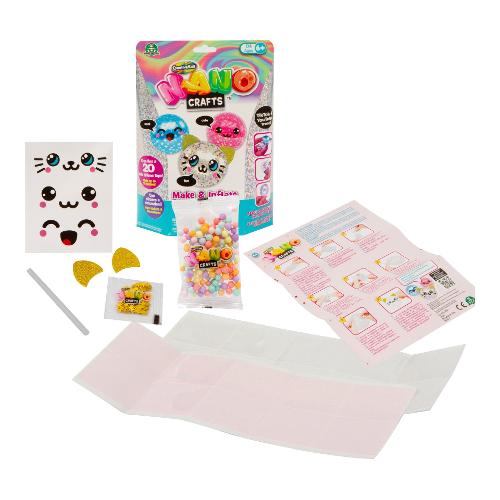 Di art&craft! Questo kit permette di creare fino a 20 “bolle” di nano tape, tra cui un trio di tenerissimi amici gonfiabili, utilizzando gli stickers inclusi per realizzare occhi, bocca e guance. È possibile inserire all’interno delle bolle le stelline e le palline colorate incluse per decorarle ulteriormente.