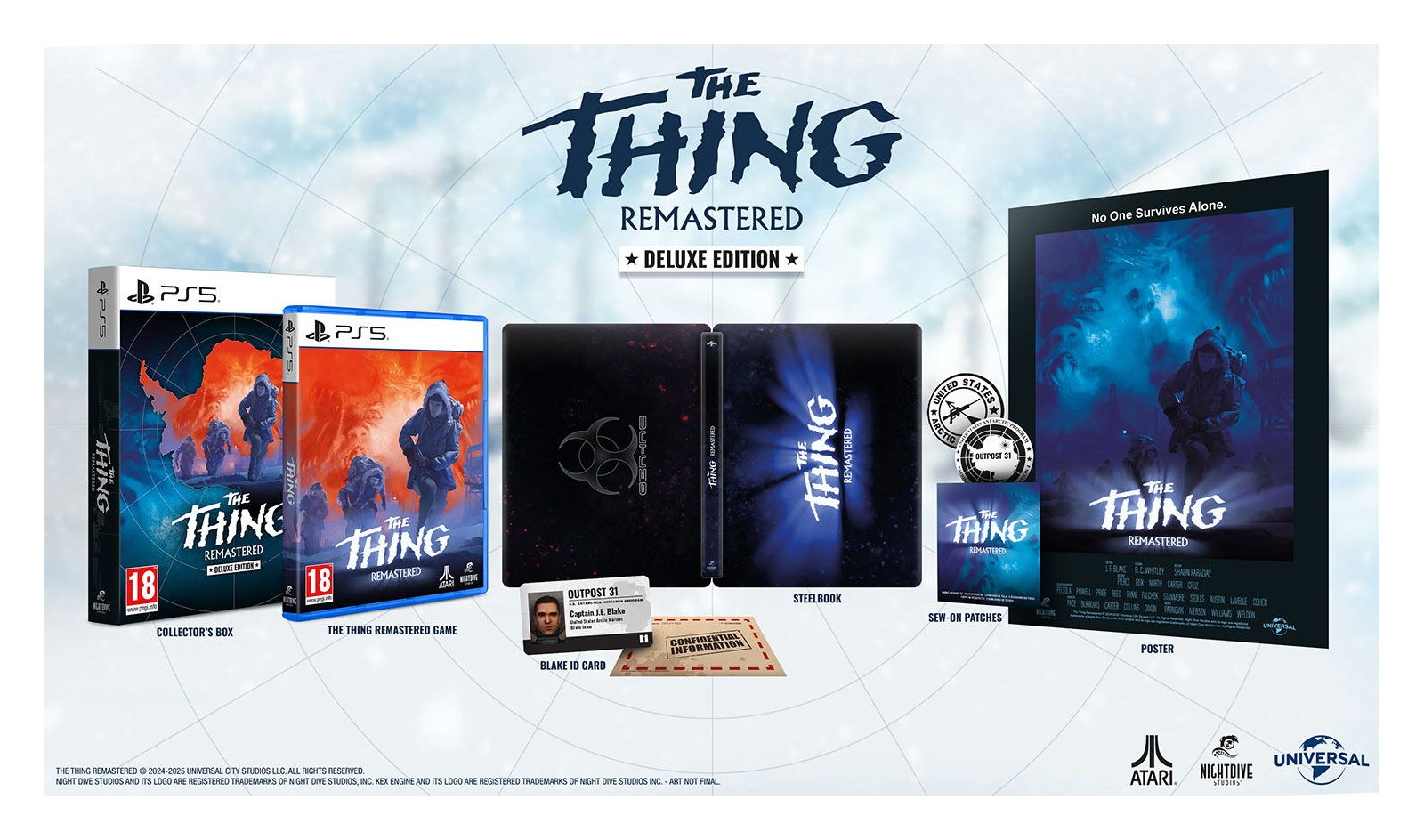 Nella gelida tundra artica, un misterioso alieno mutaforma ha annientato l'equipaggio del centro di ricerca statunitense Outpost 31. I giocatori vestono i panni del Capitano JF Blake, a capo di una squadra di soccorso delle Forze Speciali dell'Esercito degli Stati Uniti, inviata a indagare sui sanguinosi eventi accaduti nel film originale La Cosa. Intrappolato dagli elementi e a rischio di infezione da parte di un'entità orribile, Blake deve mantenere unita la sua squadra per sopravvivere, guadagnandosi la loro fiducia e assicurandosi che la loro paura e paranoia non prendano il sopravvento su di loro... o su di lui. La confezione include gioco base, carta d'identità di Blake, steelbook, toppa da cucire e poster.