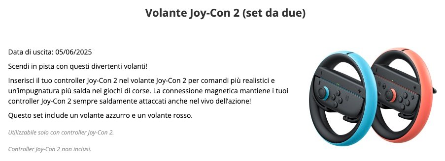 Scendi in pista con questi divertenti volanti! Inserisci il tuo controller Joy-Con 2 nel volante Joy-Con 2 per comandi più realistici e un’impugnatura più salda nei giochi di corse. La connessione magnetica mantiene i tuoi controller Joy-Con 2 sempre saldamente attaccati anche nel vivo dell’azione! Questo set include un volante azzurro e un volante rosso.