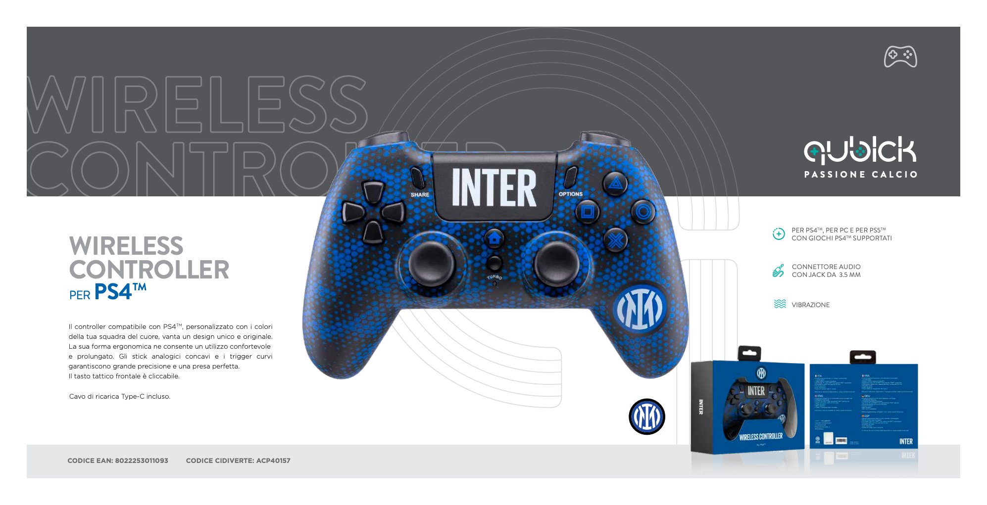 Qubick Gamepad PLAYSTATION 4 Fc Inter Black e Bluee ACP40157