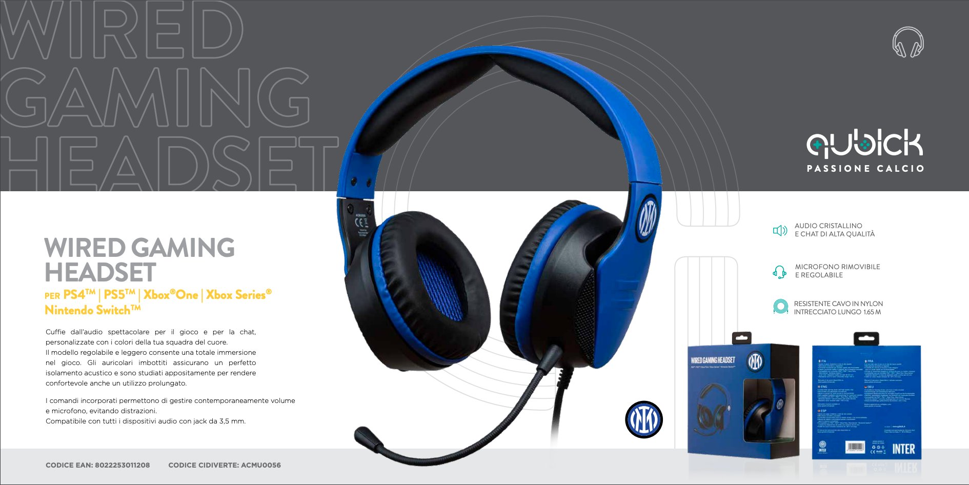Cuffie gaming MULTIPIATTAFORMA Fc Inter 2.0 Black e Blue ACMU0056
