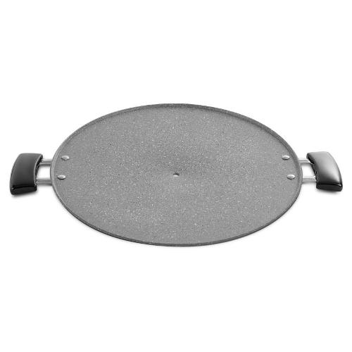 Piastra di cottura in alluminio con trattamento antiaderente PTFE ad alta resistenza EFFETTO PIETRA, provvista di due pratiche maniglie.