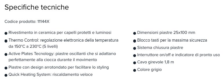 Piastra per capelli lisci o mossi. Il rivestimento ceramico favorisce la protezione dal calore e assicura una perfetta scorrevolezza, donando luminosità ai capelli e rendendo la piastra ideale per capelli opachi e spenti.