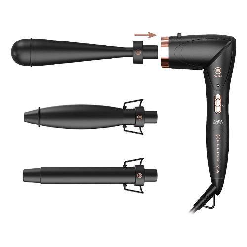 Twist & Style è facilissimo e comodissimo da utilizzare: l’accessorio si aggancia alla base con un semplice click e con l'impugnatura orientabile raggiungi facilmente ogni parte del capo. Puoi utilizzare Twist & Style in due modi: con orientamento verticale, come uno styler tradizionale, e orientato a 90°, per modellare i capelli anche nella parte posteriore della testa senza fatica. SOFT CURLS: Ferro riscaldato da 25mm per realizzare ricci morbidi e definiti. LOOSE WAVES: Ferro riscaldato dall’innovativa forma ad ellisse con diametro da 26 a 38 mm per creare onde ampie e morbide. GLAMOUR WAVES: Ferro riscaldato dalla forma conica inversa con diametro da 13 a 38 mm per onde dal look naturale e glamour.