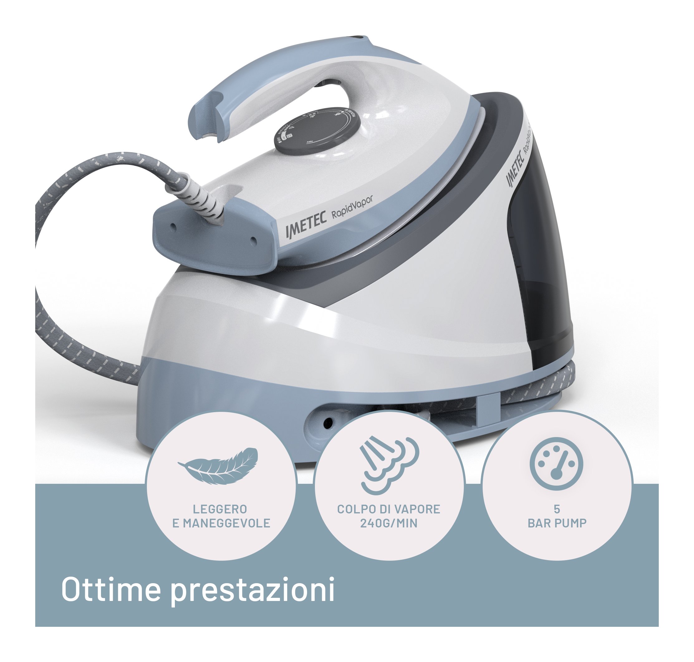 RapidVapor è il sistema stirante pronto in 1 minuto per stirare in modo ultra rapido e con la massima efficacia. Il serbatoio estraibile da 1,2 L, ricaricabile in qualsiasi momento, ti permette di stirare senza interruzioni. La piastra Fluid Ceramic garantisce una super scorrevolezza su qualsiasi tipo di tessuto, dalla seta ai jeans. Grazie al serbatoio estraibile e ricaricabile in ogni momento, è possibile stirare velocemente e senza interruzioni.