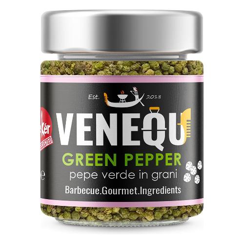I grani di pepe verde sono pepe allo stato puro. I frutti del Piper Nigrum, coltivato in India, vengono infatti raccolti prematuramente quando il frutto è ancora acerbo e vengono posti a seccare in luoghi riparati dal sole e ben aerati. Presentano una superficie rugosa, reticolata e di colore verde chiaro, sottili e fragili. Il loro sapore e odore sono meno piccanti del pepe nero, caratteristici e di ottimo gusto con un profumo che è chiaro e vivace.