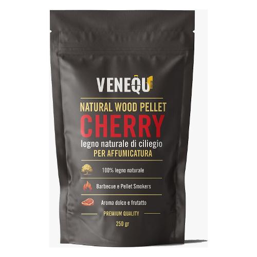 VENEQU CHERRY PELLET PER AFFUMICATURA è realizzato con legno di ciliegio puro, senza collanti, additivi o sostanze chimiche.