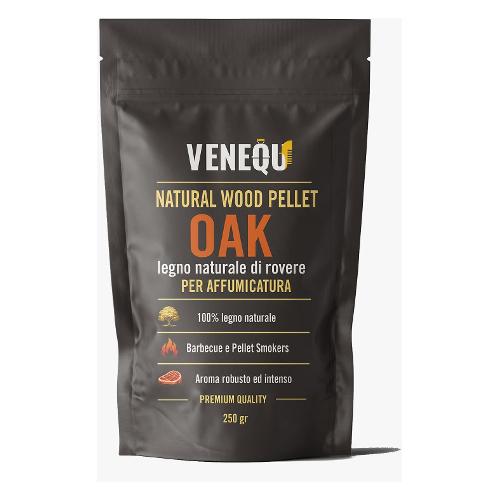 VENEQU OAK PELLET PER AFFUMICATURA è realizzato con legno di rovere puro, pressato senza l’aggiunta di collanti, additivi o aromi artificiali.