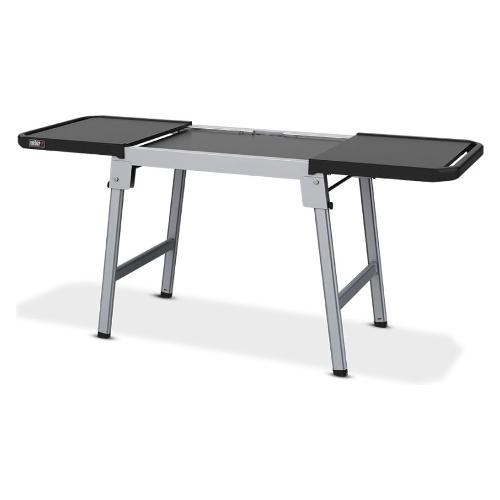 Il carrello portaplancha estensibile Weber è dotato di un vassoio centrale per posizionare plancha Weber da 43 e 56 cm o qualsiasi altra plancha con dimensioni corrispondenti. Piegato, il supporto è compatto e facile da riporre.