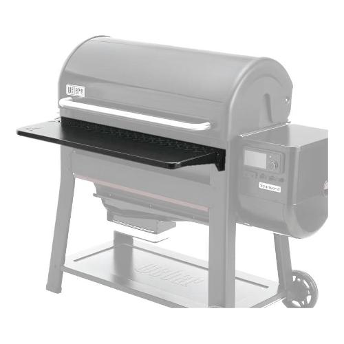 Il ripiano anteriore ripiegabile in acciaio offre oltre 2.700 cm quadrati di spazio di lavoro aggiuntivi. Ha una capacità massima di 13,5 kg di cibo e accessori per barbecue, inclusi utensili, piatti e taglieri. Quando non lo si utilizza, si ripiega comodamente. Compatibile con barbecue a pellet Searwood® XL
