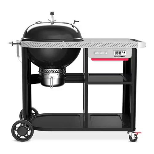 Tutte le prestazioni che ti aspetti da un kettle Weber® e uno spazio ottimizzato per preparare, servire e conservare gli utensili essenziali del barbecue con il barbecue a carbone Performer Premium - 57 cm. Questo barbecue è integrato in un carrello premium dotato di due ripiani, un ripiano laterale Weber Works compatibile con gli accessori a scomparsa XL e una guida laterale Weber Works compatibile con gli accessori ad aggancio rapido.*(non inclusi nella dotazione) Le due ruote e le rotelle bloccabili consentono di spostare comodamente il barbecue ovunque. Cuoci a lungo con risultati sempre perfetti grazie alle caratteristiche dell'iconico kettle Weber®, come la finitura smaltata applicata a mano resistente alla ruggine e ai graffi, le prese d'aria regolabili che consentono di controllare la temperatura all'interno del barbecue e il sistema di pulizia One-Touch migliorato che facilita e velocizza la rimozione della cenere. Il supporto coperchio Tuck-Away offre una comoda soluzione per sistemare il coperchio a lato del braciere, mentre la griglia di cottura incernierata si solleva su due lati ed è compatibile con gli accessori Gourmet BBQ System con base circolare, per scoprire infiniti modi di cucinare.