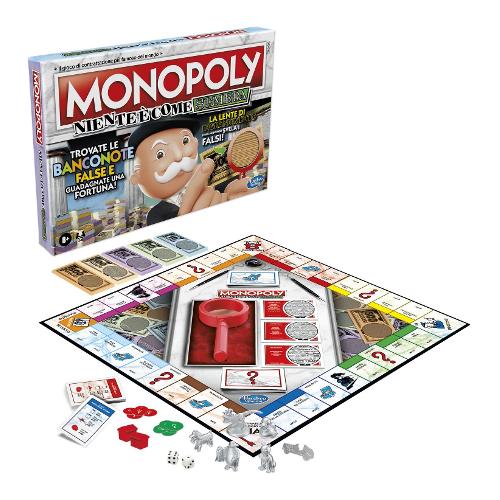 Nel gioco da tavolo ‘’Monopoly Niente È Come Sembra’’, l'apparenza spesso inganna, per questo è necessario prestare molta attenzione. Qualcuno ha aggiunto banconote e carte Imprevisti false! Fortunatamente, Mr. Monopoly ha deciso di prestare ai giocatori la propria lente di ingrandimento, in modo che possano scovare i falsi e guadagnare comunque una fortuna. In questo incredibile gioco con tanto mistero e cose da scoprire, i giocatori potranno accusare gli avversari di aver usato dei falsi, utilizzando dei gettoni accusa. Attenzione però: i gettoni vanno usati con parsimonia! Infatti ogni giocatore avrà a disposizione un numero limitato di gettoni accusa. Il Gioco contiene delle pedine Monopoly personalizzate che enfatizzano il tema dell'inganno e del mistero. Il giocatore con più soldi (veri o falsi che siano) al termine della partita, vince!