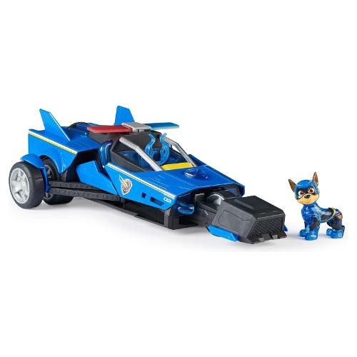 Progettato con dettagli ed elementi realistici, il mighty cruiser di chase è fedele a quello che il cucciolo usa per le sue missioni di salvataggio in paw patrol: il super film. Una volta inserito chase nel posto di comando, le ruote anteriori fuoriescono e si posizionano vicino a quelle posteriori. Il cruscotto si allunga in avanti rendendo il veicolo più aerodinamico. Una volta posizionato chase nella cabina di pilotaggio del suo mighty cruiser, luci e suoni si attivano contemporaneamente. Dotato dell'uniforme originale di paw patrol: il super film, il personaggio di chase dei giochi paw patrol è unico nel suo genere. L'uniforme traslucida si illumina quando chase è a bordo del suo veicolo
