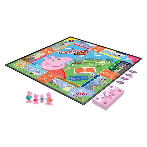 Peppa adora divertirsi con la sua famiglia e i bambini potranno divertirsi con il gioco monopoly: peppa pig edition. I giocatori sposteranno la loro pedina di peppa pig, george pig, mamma pig o papà pig lungo il tabellone, acquistando proprietà come montagna innevata, la casa di peppa e il giardino di nonno pig. I bambini potranno esercitarsi nelle loro abilità di calcolo mentre contano i soldi di monopoly durante il gioco. È un gioco veloce studiato per i bambini dai 5 anni in su ed è un’ottima introduzione al classico monopoly. Offre un’ottima opportunità per pomeriggi di gioco, serate in compagnia e può essere una divertente attività di apprendimento
